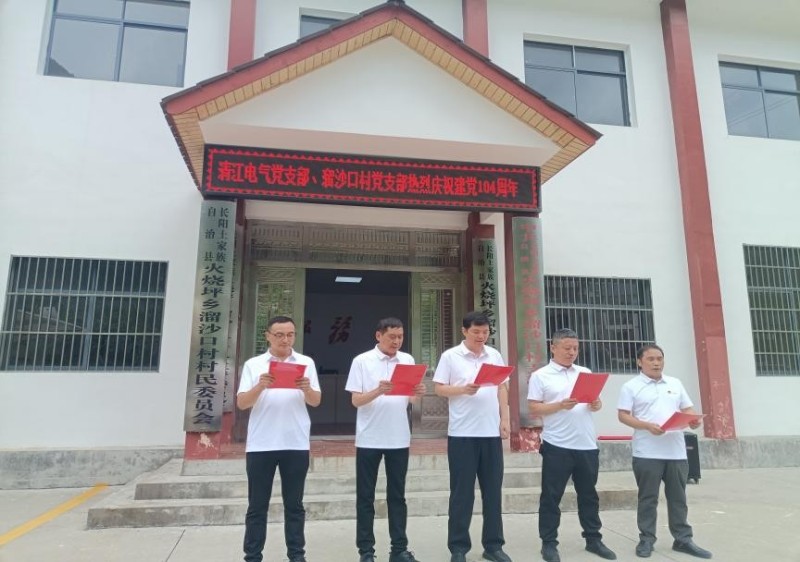 2025年6月23日,宜昌清江電氣有限公司領(lǐng)導(dǎo)班子成員、全體黨員、入黨積極分子赴火燒坪鄉(xiāng)溜沙口村,熱烈慶祝中國(guó)共產(chǎn)黨104歲生日;“村企共建”助力最美鄉(xiāng)村建設(shè)。