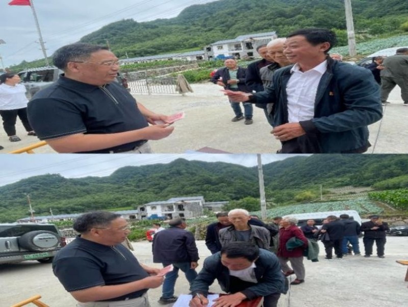 公司董事長(zhǎng)鄧衍貴為參會(huì)村級(jí)黨員發(fā)放慰問(wèn)金,細(xì)心交談?wù)媲閱?wèn)候。